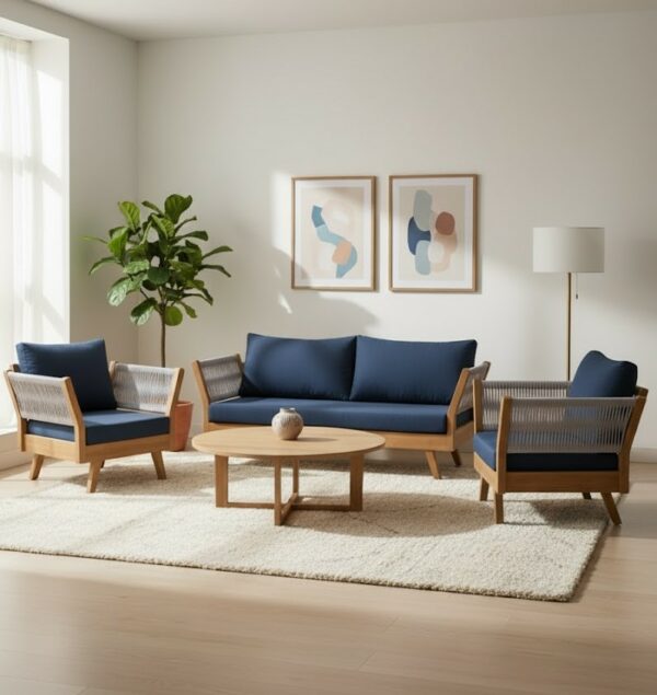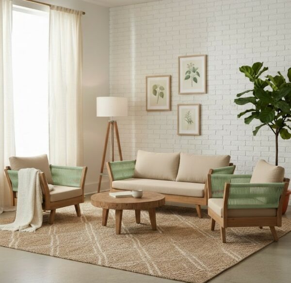 A estrutura é construída em madeira peroba rosa, renomada por sua resistência superior e beleza atemporal, com tons que variam de rosados suaves a vermelhos intensos, trazendo um toque natural e elegante ao design. O acabamento pode ser escolhido em PU para uma proteção duradoura e brilhante, ou em verniz à base de água, que preserva a essência ecológica da madeira sem comprometer sua durabilidade. Os estofados são versáteis, disponíveis em courvin – um couro sintético premium, macio e fácil de limpar – ou em tecido aquablock, que repele líquidos e manchas, garantindo praticidade no dia a dia sem abrir mão do conforto.